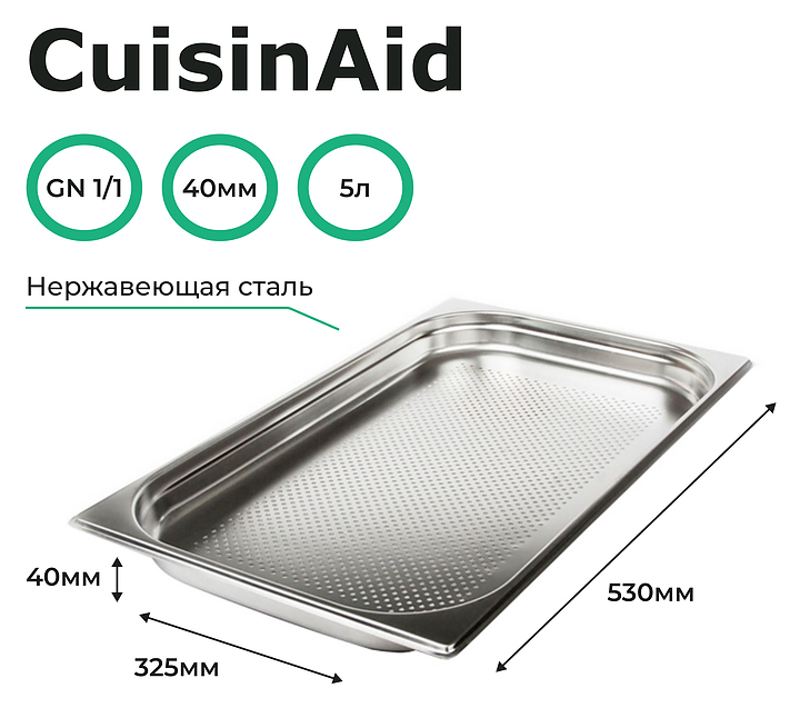 Гастроемкость CuisinAid CD-811-40P /15 GN 1/1-40 (530Х325Х40) нерж. сталь