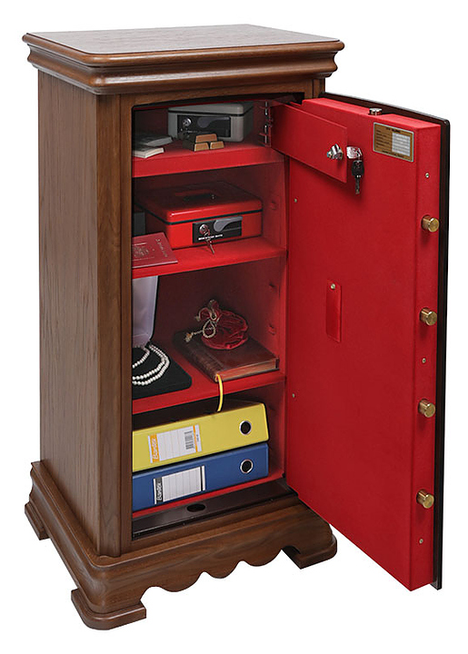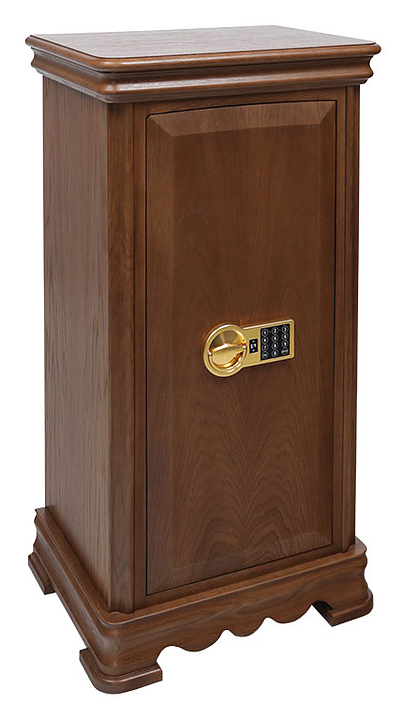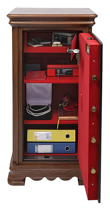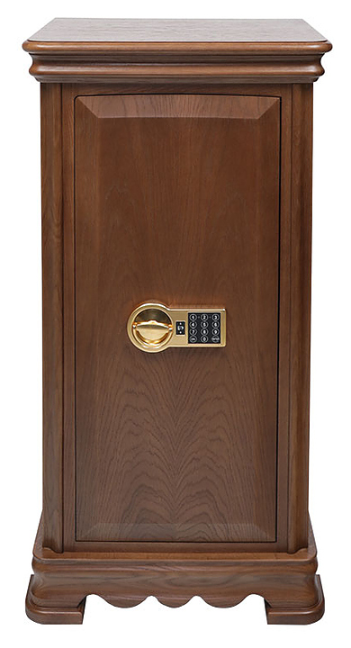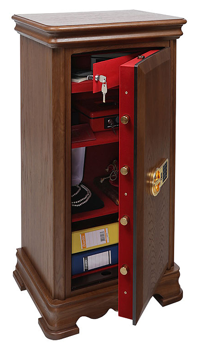Взломостойкий сейф Valberg Карат-90T EL Д предназначен для безопасного хранения документации, наличных денежных средств, ювелирных изделий и других ценностей в гостиницах, отелях, офисах, квартирах и загородных домах. Модель оснащена распашной дверью и трейзером, запираемым на ключ. Корпус выполнен из натурального дерева и шпона дуба, внутренняя обивка – из бархата, покрытие замка – 24-каратное золото. Особенности: