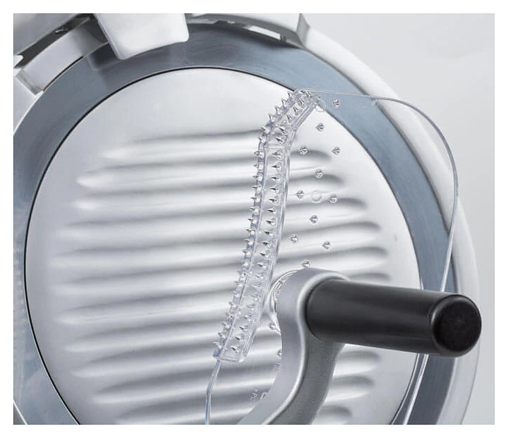 Слайсер RGV Luxury 300 ES PROF предназначен для нарезки мяса, сыров, колбасных изделий, хлеба и других гастрономических изделий на ровные ломтики на предприятиях общественного питания, торговли и пищевой промышленности. Модель оснащена встроенным затачивающим устройством. Корпус выполнен из литого алюминия, нож - из закаленной хромированной стали, держатель - из алюминия, крышка лезвия и лоток для мяса - из литого анодированного алюминия. Особенности: