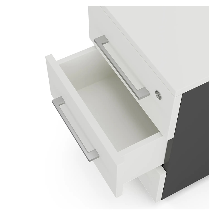 Мобильная тумба Кобор TМ3-40/50 black/premium используется совместно с офисными столами. Модель оснащена 3 выдвижными ящиками и 4 колесами. Корпус выполнен из ламинированной древесно-стружечной плиты (ЛДСП) цвета черный муар (RAL9005), столешница и ящики – из ЛДСП цвета белый премиум (W1000 ST9). Внимание! На фото аналогичная модель другого размера. Внимание! Информация о товарах, размещенная на сайте, не является публичной офертой, определяемой положениями Части 2 Статьи 437 Гражданского кодекса Российской Федерации. Производители вправе вносить изменения в технические характеристики, внешний вид и комплектацию товаров без предварительного уведомления. Уточняйте характеристики у наших менеджеров перед оформлением заказа. |