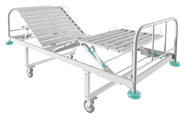 Медицинская кровать ПРОМЕТ HILFE KM-03 используется для ухода, диагностики, лечения и наблюдения за пациентом в стационарных медицинских учреждениях и в домашних условиях. Модель оснащена 3-секционным реечным ложе с механической регулировкой, регулировкой спинной, ножной и тазобедренной секций, 4 самоориентирующимися колесами, 2 колесами с тормозным устройством, ограничительными бамперами и фиксацией наклонов секций при помощи механизма гребенка. Каркас выполнен из профильной трубы и покрыт эпоксидно-порошковой краской, бампера - из пластика. Матрас в комплект поставки не входит. Дополнительные характеристики:
