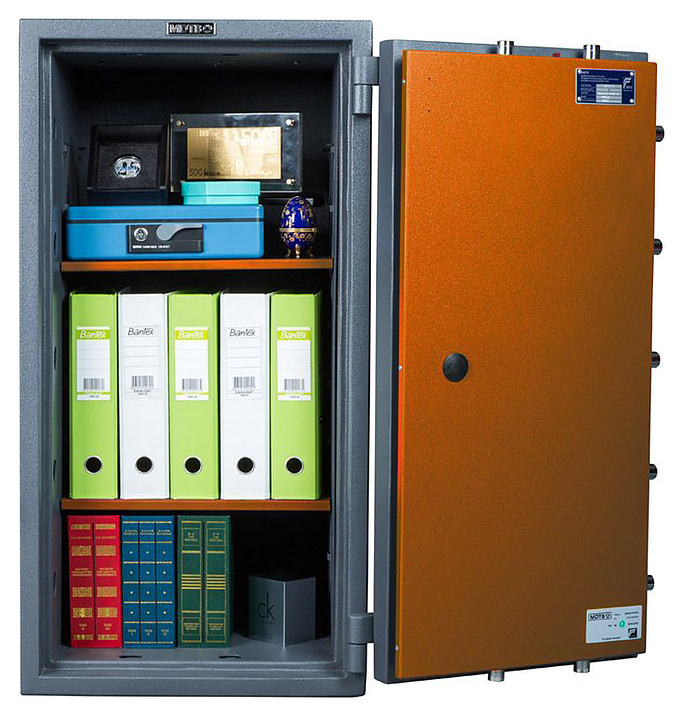 Взломостойкий сейф MDТB BASTION M 1368 EK предназначен для безопасного хранения ценных личных и корпоративных документов, коллекций раритетов и антиквариата, а также ювелирных изделий и наличности частных лиц и организаций. Модель отличается высоким качеством и современным дизайном. При заливке двери и корпуса используется запатентованная система высокопрочного армированного бетона. Изделие оснащено электронным кодовым замком PS 610/E36, ключевым замком KABA MAUER и анкерным креплением к полу и стене. В комплект поставки входят анкерные болты. Особенности: