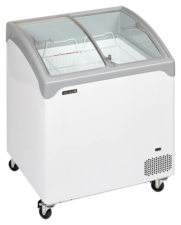 Морозильный ларь TEFCOLD NIC201SCEB предназначен для заморозки и длительного хранения продуктов и полуфабрикатов на предприятиях общественного питания и торговли. Модель оснащена 2 гнутыми раздвижными стеклянными крышками, 2 корзинами-сетками, замком, механическим контроллером, термометром, 4 колесами, 2 из которых снабжены стопорами. Внутренняя обшивка выполнена из оцинкованной стали, окрашенной белой порошковой краской. Особенности: