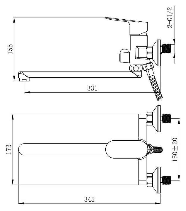 Смеситель для ванны и душа VODA Shore SHR31 без аксессуаров