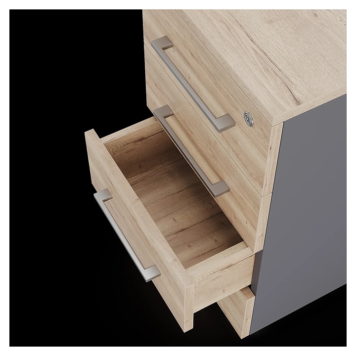 Приставная тумба Кобор TS4-40/80 graphite/natural используется совместно с офисными столами. Модель оснащена 4 выдвижными ящиками и 4 регулируемыми по высоте опорами. Корпус выполнен из ламинированной древесно-стружечной плиты (ЛДСП) цвета графит муар (RAL7024), столешница и ящики – из ЛДСП цвета натуральный дуб (H1180 ST37). Внимание! На фото аналогичная модель другого размера. Внимание! Информация о товарах, размещенная на сайте, не является публичной офертой, определяемой положениями Части 2 Статьи 437 Гражданского кодекса Российской Федерации. Производители вправе вносить изменения в технические характеристики, внешний вид и комплектацию товаров без предварительного уведомления. Уточняйте характеристики у наших менеджеров перед оформлением заказа. |