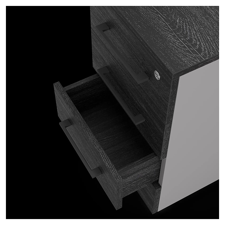 Мобильная тумба Кобор TМ4-40/80 aluminum/wood используется совместно с офисными столами. Модель оснащена 4 выдвижными ящиками и 4 колесами. Корпус выполнен из ламинированной древесно-стружечной плиты (ЛДСП) цвета алюминиевый металлик (RAL9006), столешница и ящики – из ЛДСП цвета древесина графит (H1123 ST22).