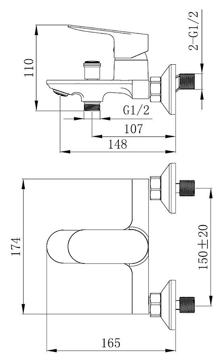Смеситель для ванны и душа VODA Shore SHR54 без аксессуаров