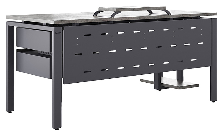 Компьютерный стол Кобор KP-160/60 graphite/chicago используется в офисных помещениях и кабинетах руководителей. Модель оснащена П-образными опорами. Каркас выполнен из металла, выкрашенного в цвет графит муар (RAL7024), столешница – из ламинированной древесно-стружечной плиты (ЛДСП) цвета бетон чикаго (F186 ST9). Опции (заказываются отдельно):