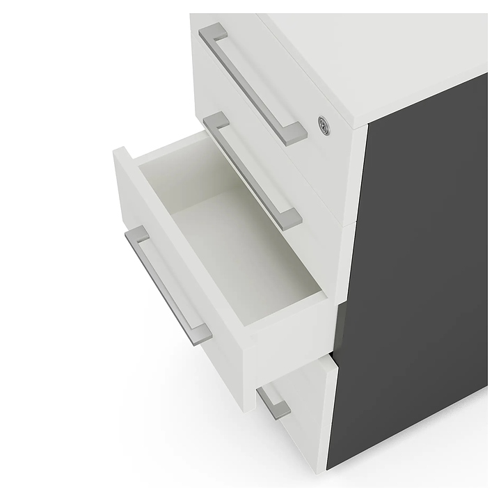 Мобильная тумба Кобор TМ5-40/70 black/premium используется совместно с офисными столами. Модель оснащена 5 выдвижными ящиками и 4 колесами. Корпус выполнен из ламинированной древесно-стружечной плиты (ЛДСП) цвета черный муар (RAL9005), столешница и ящики – из ЛДСП цвета белый премиум (W1000 ST9). Внимание! На фото аналогичная модель другого размера. Внимание! Информация о товарах, размещенная на сайте, не является публичной офертой, определяемой положениями Части 2 Статьи 437 Гражданского кодекса Российской Федерации. Производители вправе вносить изменения в технические характеристики, внешний вид и комплектацию товаров без предварительного уведомления. Уточняйте характеристики у наших менеджеров перед оформлением заказа. |