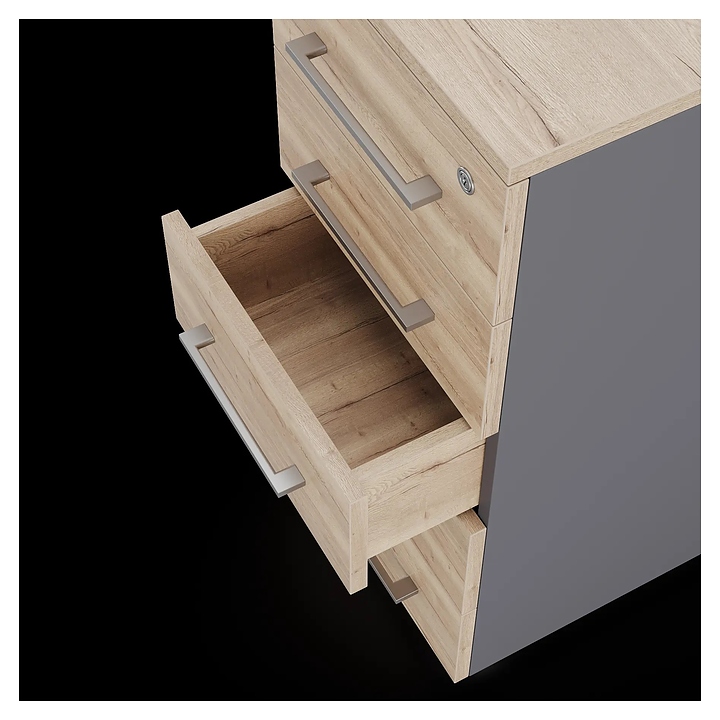 Мобильная тумба Кобор TМ5-40/80 graphite/natural используется совместно с офисными столами. Модель оснащена 5 выдвижными ящиками и 4 колесами. Корпус выполнен из ламинированной древесно-стружечной плиты (ЛДСП) цвета графит муар (RAL7024), столешница и ящики – из ЛДСП цвета натуральный дуб (H1180 ST37). Внимание! На фото аналогичная модель другого размера. Внимание! Информация о товарах, размещенная на сайте, не является публичной офертой, определяемой положениями Части 2 Статьи 437 Гражданского кодекса Российской Федерации. Производители вправе вносить изменения в технические характеристики, внешний вид и комплектацию товаров без предварительного уведомления. Уточняйте характеристики у наших менеджеров перед оформлением заказа. |