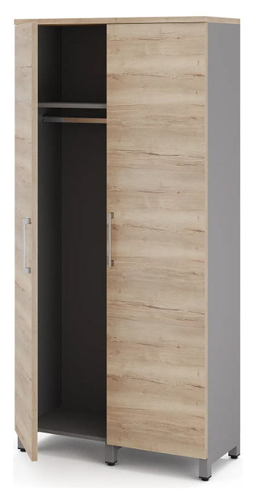 Шкаф для одежды Кобор HRG-90/40/M используется в офисных помещениях и кабинетах руководителя. Модель оснащена 2 распашными дверцами, 1 полкой, штангой для одежды и регулируемыми по высоте опорами. Корпус, верхняя крышка и дверцы выполнены из ЛДСП, задняя стенка и ножки - из металла. Дополнительные характеристики:
