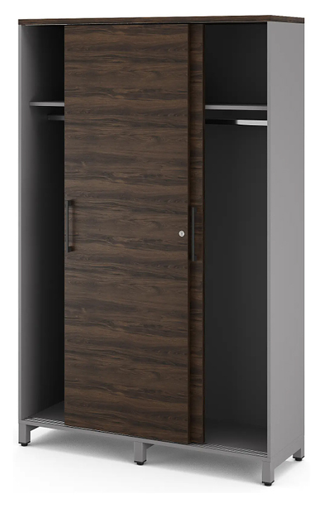 Шкаф для одежды Кобор HG-120/40/M используется в офисных помещениях и кабинетах руководителя. Модель оснащена 2 дверцами-купе с замком, 1 полкой, штангой для одежды и регулируемыми по высоте опорами. Корпус, верхняя крышка и дверцы выполнены из ЛДСП, задняя стенка и ножки - из металла. Дополнительные характеристики: