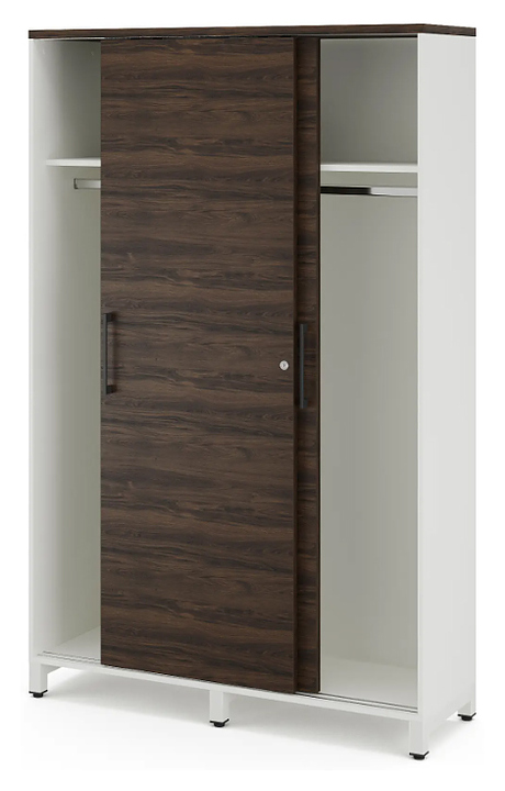 Шкаф для одежды Кобор HG-120/60/M используется в офисных помещениях и кабинетах руководителя. Модель оснащена 2 дверцами-купе с замком, 1 полкой, штангой для одежды и регулируемыми по высоте опорами. Корпус, верхняя крышка и дверцы выполнены из ЛДСП, задняя стенка и ножки - из металла. Дополнительные характеристики: