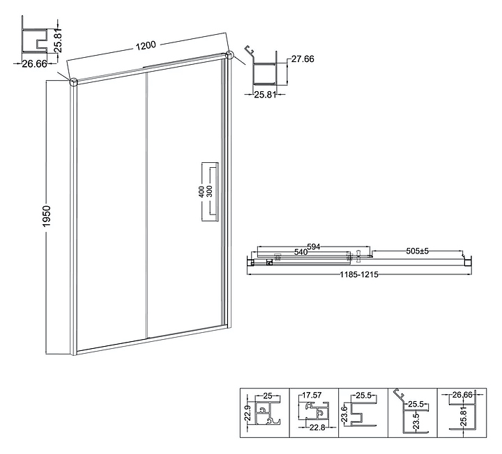 Дверь душевая Niagara NOVA NG-84-12AB 120х195 см, в нишу, раздвижная, черный матовый