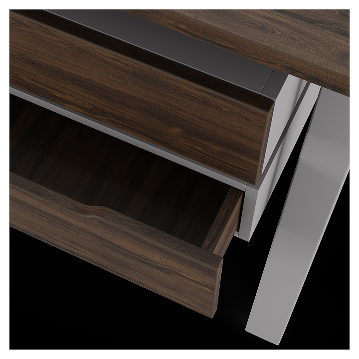 Компьютерный стол Кобор KAB-160/60 aluminum/charlston используется в офисных помещениях и кабинетах руководителей. Модель оснащена A-образными опорами со скошенными фронтальными сегментами. Каркас выполнен из металла, выкрашенного в цвет алюминиевый металлик (RAL9006), столешница – из ламинированной древесно-стружечной плиты (ЛДСП) цвета дуб чарльстон (H3154 ST36). Опции (заказываются отдельно):