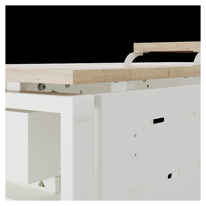 Компьютерный стол Кобор КAB-180/60 white/natural используется в офисных помещениях и кабинетах руководителей. Модель оснащена A-образными опорами со скошенными фронтальными сегментами. Каркас выполнен из металла, выкрашенного в цвет белый муар (RAL9016), столешница – из ламинированной древесно-стружечной плиты (ЛДСП) цвета натуральный дуб (H1180 ST37). Опции (заказываются отдельно):