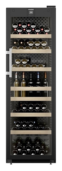 Винный шкаф Liebherr WFbli 5241 серии Perfection предназначен для охлаждения и длительного хранения разливного вина в частных домах, квартирах, отелях и офисах. Модель оснащена сенсорной панелью управления Touch & Swipe, 6 выдвижными полками, корзиной для вертикального хранения бутылок и LED освещением. Боковые и задняя стенки выполнены из стали, дверь - из изоляционного стекла, внутренний корпус - из пластика, ручка - из алюминия, полки - из металла с деревянным фронтом. Особенности: