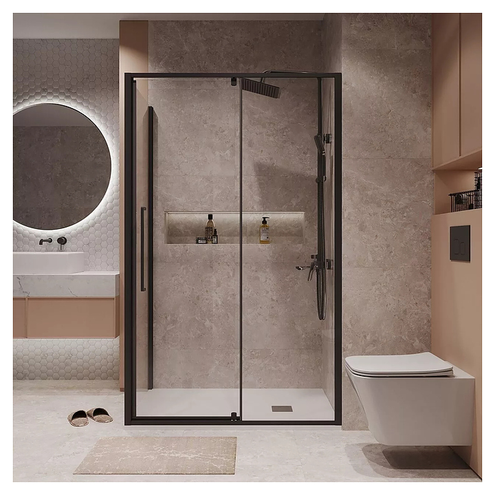 Уголок душевой Niagara Nova NG-85-11AB-A80B-34 110х80х195 см, профиль черный матовый
