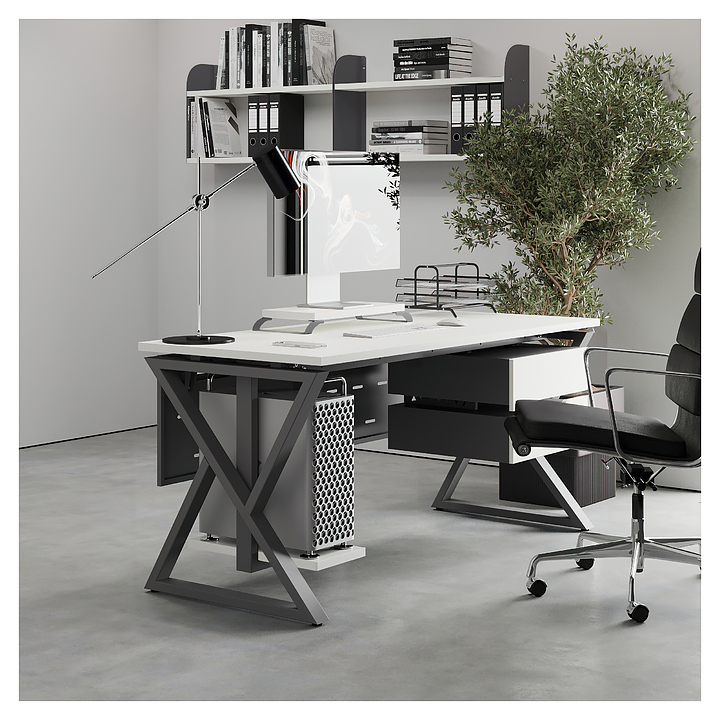Компьютерный стол Кобор КW-140/80 aluminum/premium используется в офисных помещениях и кабинетах руководителей. Модель оснащена W-образными опорами. Каркас выполнен из металла, выкрашенного в цвет алюминиевый металлик (RAL9006), столешница – из ламинированной древесно-стружечной плиты (ЛДСП) цвета белый премиум (W1000 ST9). Опции (заказываются отдельно):