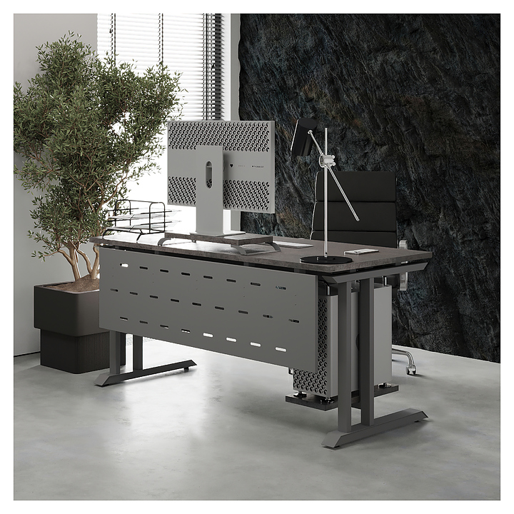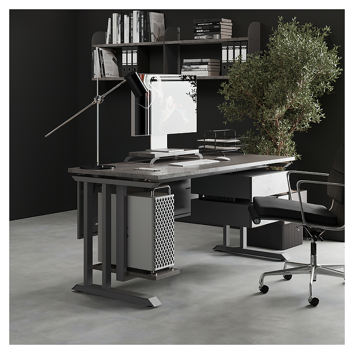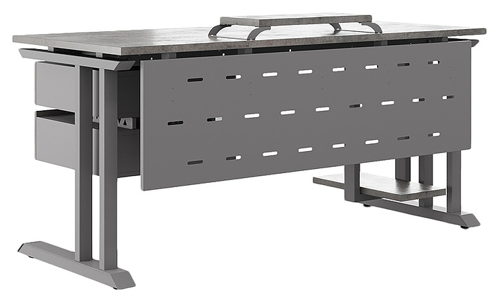 Компьютерный стол Кобор KL1-100/60 aluminum/chicago используется в офисных помещениях и кабинетах руководителей. Модель оснащена L-образными опорами. Каркас выполнен из металла, выкрашенного в цвет алюминиевый металлик (RAL9006), столешница – из ламинированной древесно-стружечной плиты (ЛДСП) цвета бетон чикаго (F186 ST9). Опции (заказываются отдельно):