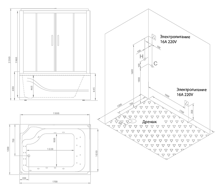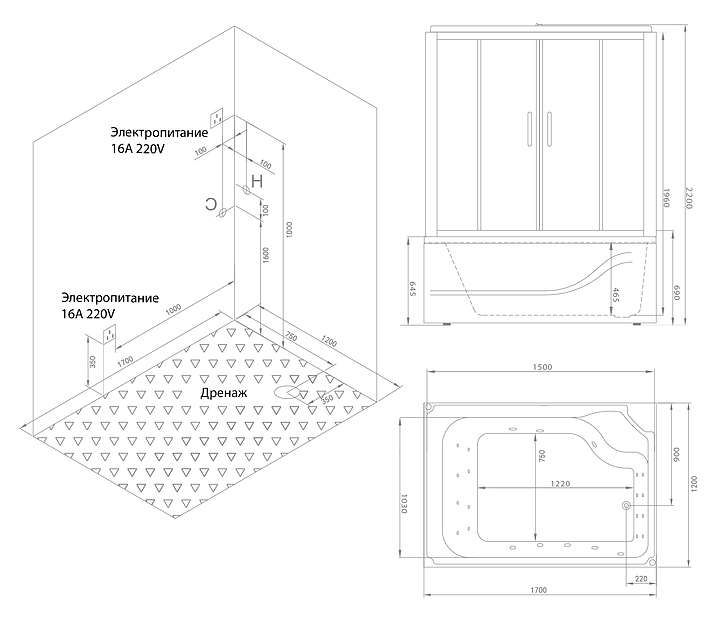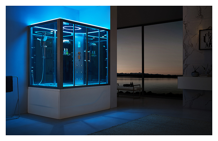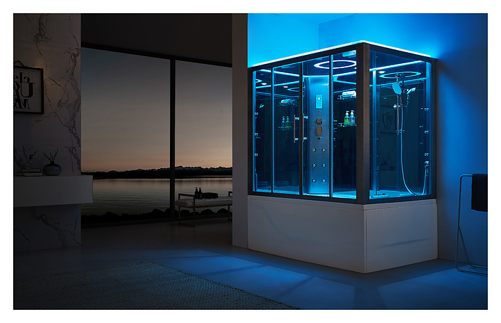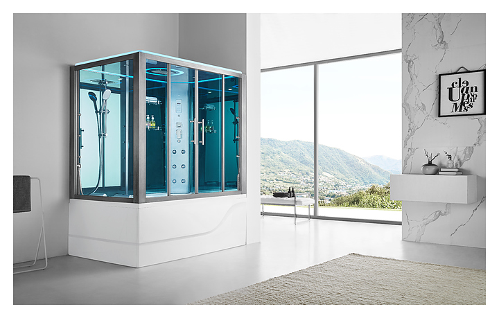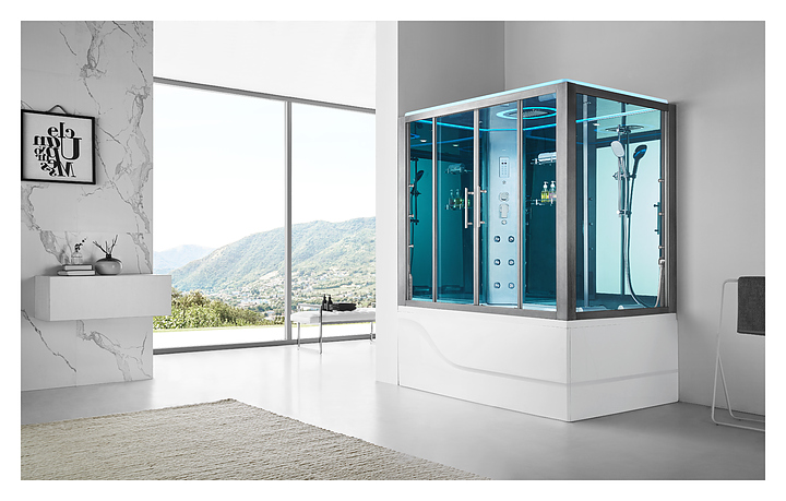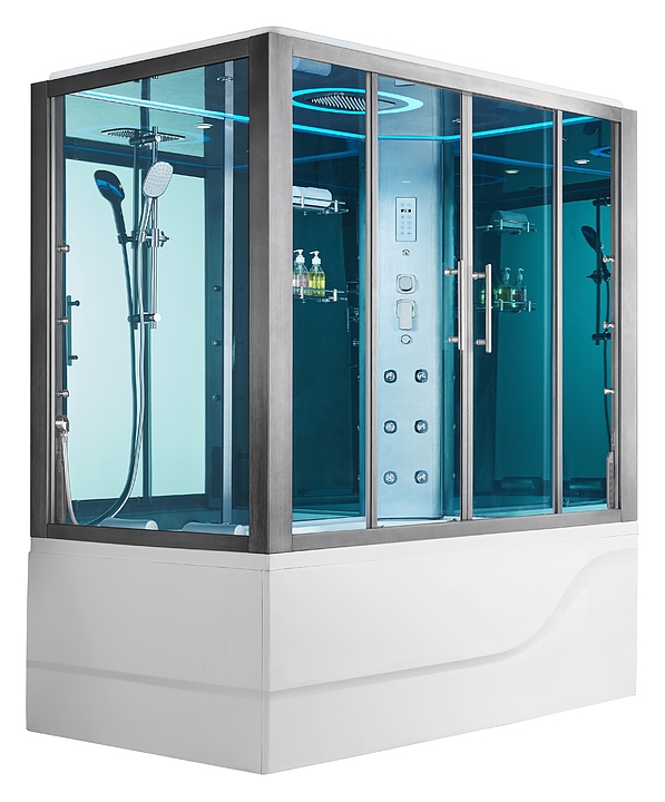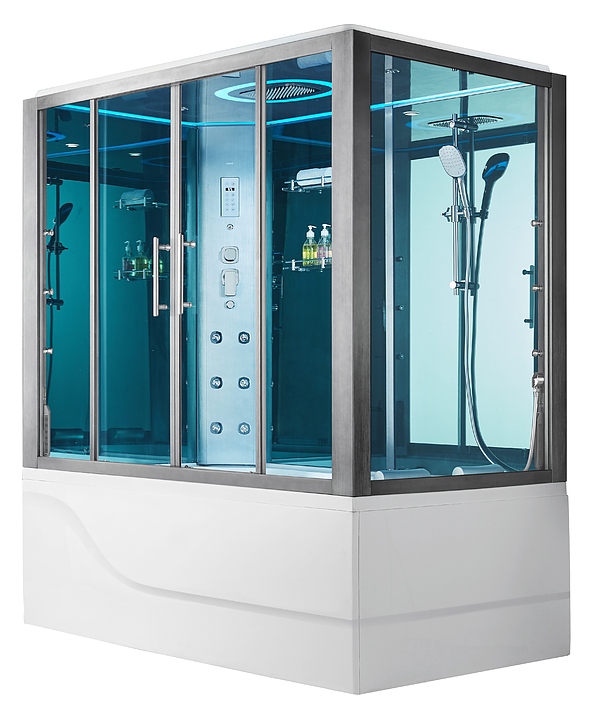Душевая кабина SSWW BU616 R 170х120х218 см, правая, с гидромассажной ванной и паром, прозрачное стекло, раздвижная, черный