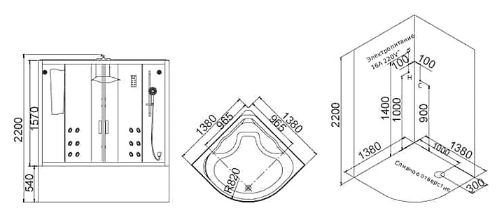Душевая кабина SSWW WU110 138х138х220 см, с гидромассажем, прозрачное стекло, раздвижная, белый