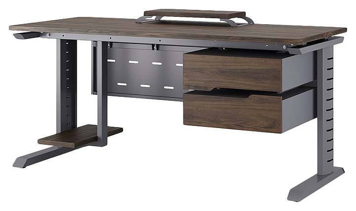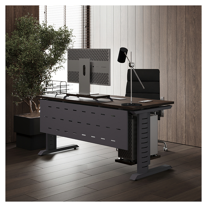 Компьютерный стол Кобор КL2-80/70 graphite/charlston используется в офисных помещениях и кабинетах руководителей. Модель оснащена L-образными опорами с декоративными вставками на боковинах. Каркас выполнен из металла, выкрашенного в цвет графит муар (RAL7024), столешница – из ламинированной древесно-стружечной плиты (ЛДСП) цвета дуб чарльстон (H3154 ST36). Опции (заказываются отдельно):