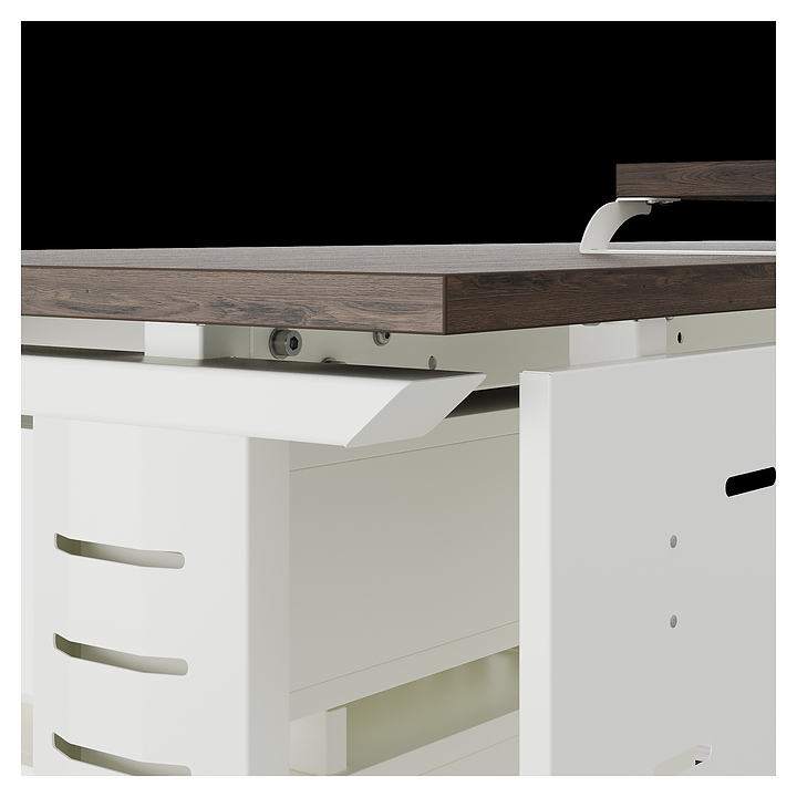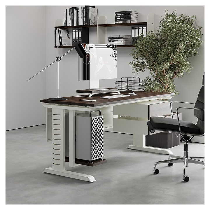 Компьютерный стол Кобор KL2-80/70 white/charlston используется в офисных помещениях и кабинетах руководителей. Модель оснащена L-образными опорами с декоративными вставками на боковинах. Каркас выполнен из металла, выкрашенного в цвет белый муар (RAL9016), столешница – из ламинированной древесно-стружечной плиты (ЛДСП) цвета дуб чарльстон (H3154 ST36). Опции (заказываются отдельно):
