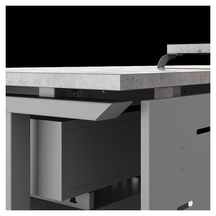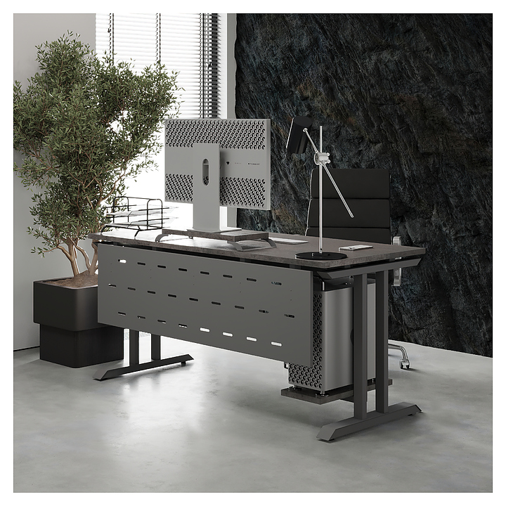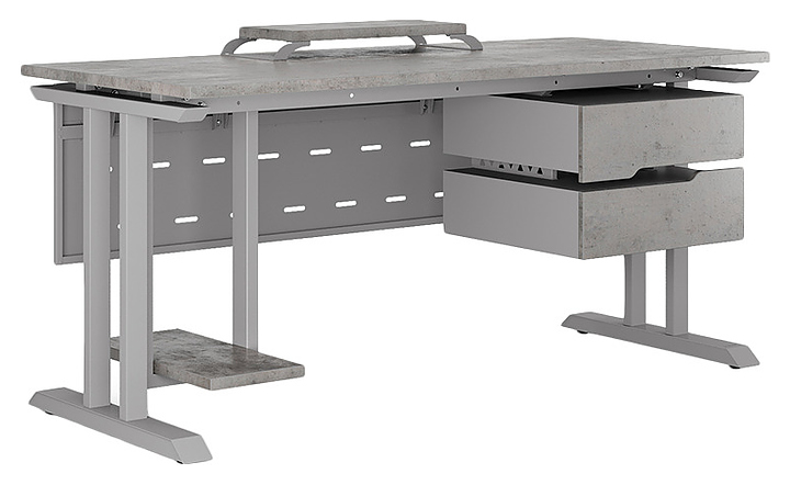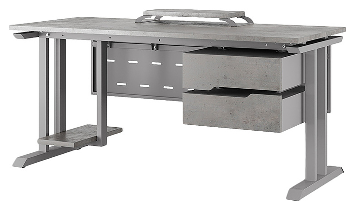 Компьютерный стол Кобор KT-100/60 aluminum/chicago используется в офисных помещениях и кабинетах руководителей. Модель оснащена T-образными опорами. Каркас выполнен из металла, выкрашенного в цвет алюминиевый металлик (RAL9006), столешница – из ламинированной древесно-стружечной плиты (ЛДСП) цвета бетон чикаго (F186 ST9). Опции (заказываются отдельно):