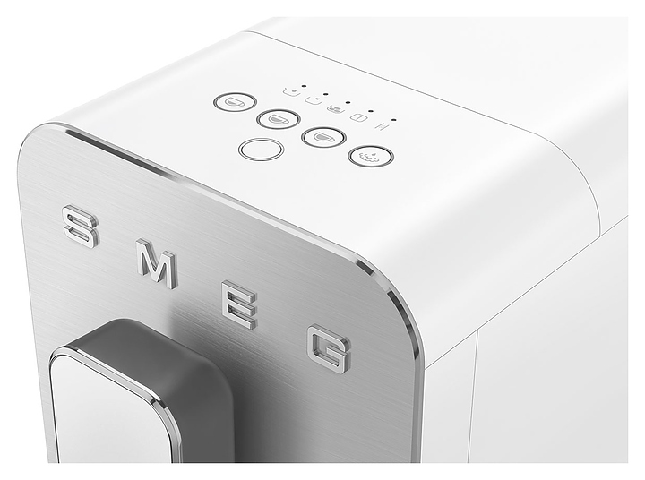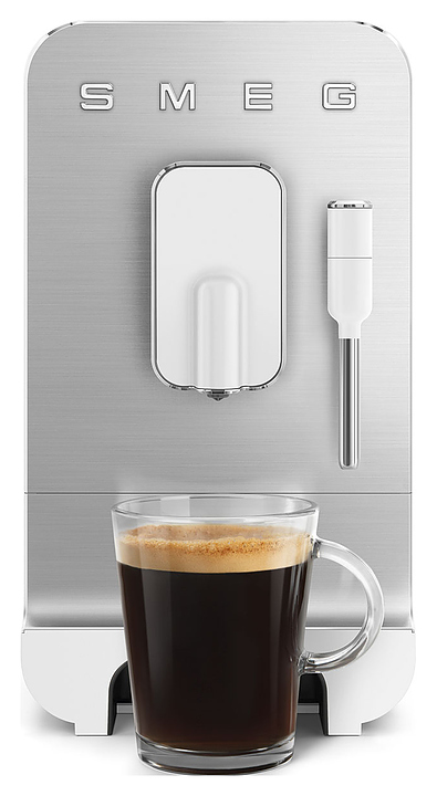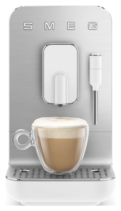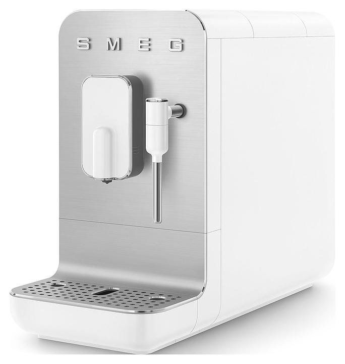 Кофемашина Smeg BCC12WHMEU предназначена для приготовления эспрессо и кофейных напитков на его основе в частных домах и квартирах. Модель выполнена в стиле 50-х годов. Корпус и резервуар для воды изготовлены из пластика, фронтальная панель и держатель для чашек - из алюминия, жернова кофемолки и капучинатор - из нержавеющей стали. Настройки: