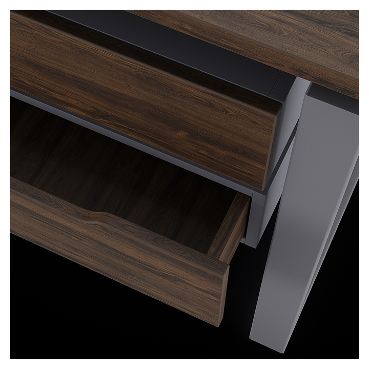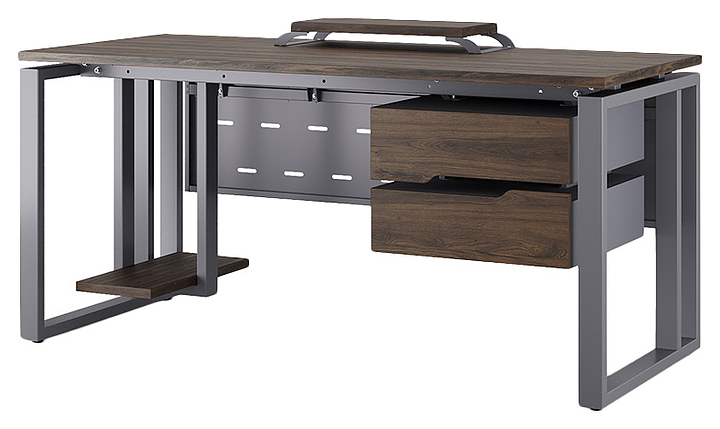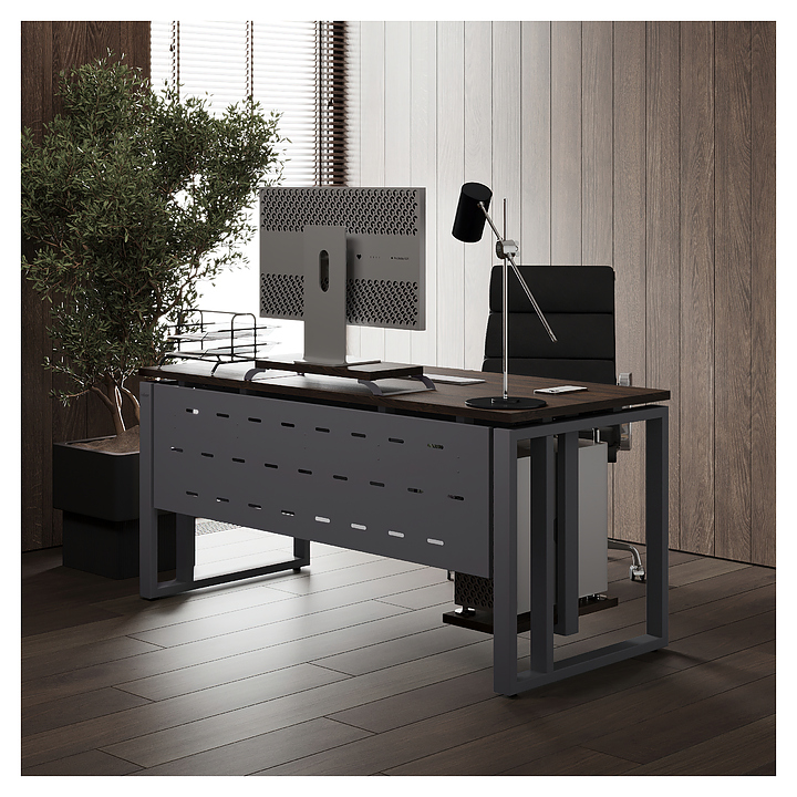 Компьютерный стол Кобор КO2-80/80 graphite/charlston используется в офисных помещениях и кабинетах руководителей. Модель оснащена усиленными вертикальной балкой O-образными опорами. Каркас выполнен из металла, выкрашенного в цвет графит муар (RAL7024), столешница – из ламинированной древесно-стружечной плиты (ЛДСП) цвета дуб чарльстон (H3154 ST36). Опции (заказываются отдельно):