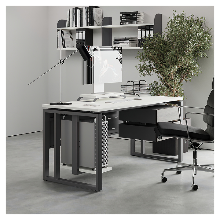 Компьютерный стол Кобор KO2-180/70 aluminum/premium используется в офисных помещениях и кабинетах руководителей. Модель оснащена усиленными вертикальной балкой O-образными опорами. Каркас выполнен из металла, выкрашенного в цвет алюминиевый металлик (RAL9006), столешница – из ламинированной древесно-стружечной плиты (ЛДСП) цвета белый премиум (W1000 ST9). Опции (заказываются отдельно):