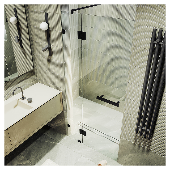 Дверь душевая MaybahGlass MGD-490-6 120х195 см, распашная, с добором на петлях, черный