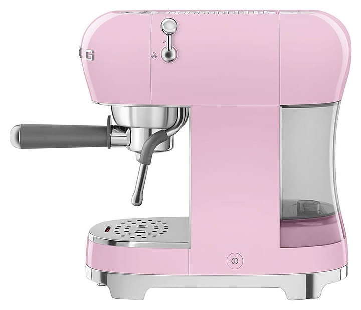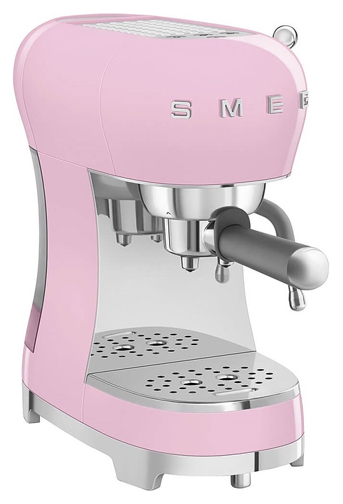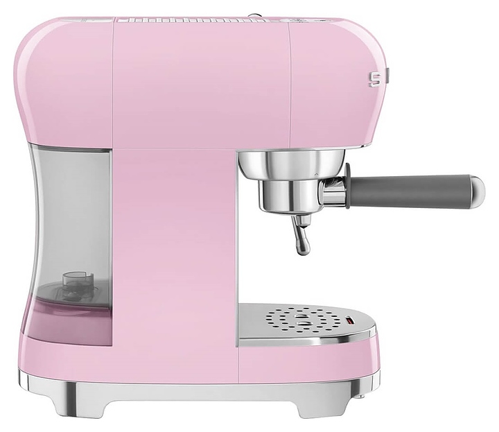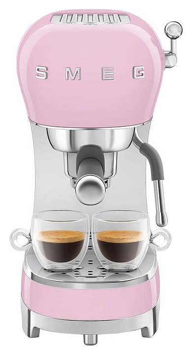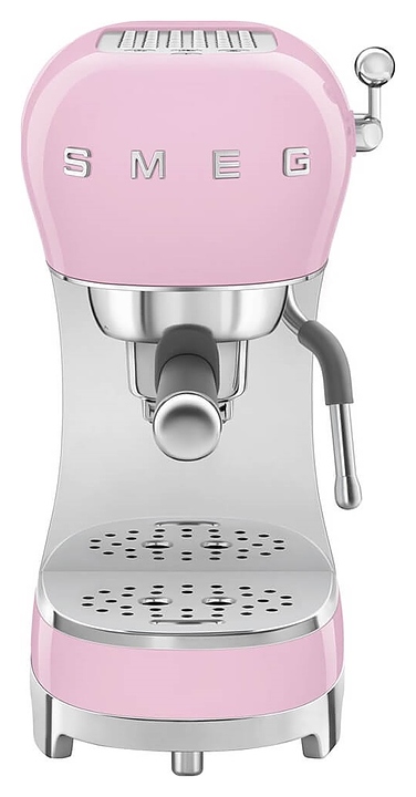 Эспрессо кофемашина SMEG ECF02PKEU предназначена для приготовления кофе эспрессо и напитков на его основе в домашних условиях. Модель оснащена кабелем питания с евровилкой (Shuko) и панелью управления с нажимными кнопками. Корпусы прибора и основания подставки для чашек выполнены из пластика с внешней глянцевой поверхностью пастельного розового оттенка, основание прибора – из пластика с покрытием цвета полированный хром, бойлер, трубка подачи горячей воды / пара, подогреватель и поддон для чашек, фильтры, корпус холдера – из нержавеющей стали, резервуар для воды – из сополимера стирола и акрилонитрила (SAN), рукоятка холдера – из серого пластика, кнопки и накладные объемные литеры логотипа – из пластика с серебристым покрытием. Комплектация: