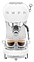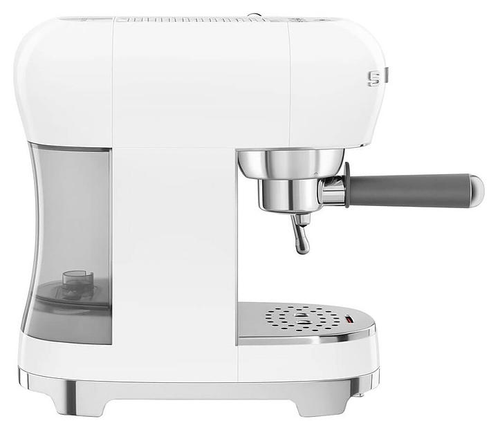 Эспрессо кофемашина SMEG ECF02WHEU предназначена для приготовления кофе эспрессо и напитков на его основе в домашних условиях. Модель оснащена кабелем питания с евровилкой (Shuko) и панелью управления с нажимными кнопками. Корпусы прибора и основания подставки для чашек выполнены из пластика с внешней глянцевой поверхностью белого цвета, основание прибора – из пластика с покрытием цвета полированный хром, бойлер, трубка подачи горячей воды / пара, подогреватель и поддон для чашек, фильтры, корпус холдера – из нержавеющей стали, резервуар для воды – из сополимера стирола и акрилонитрила (SAN), рукоятка холдера – из серого пластика, кнопки и накладные объемные литеры логотипа – из пластика с серебристым покрытием. Комплектация: