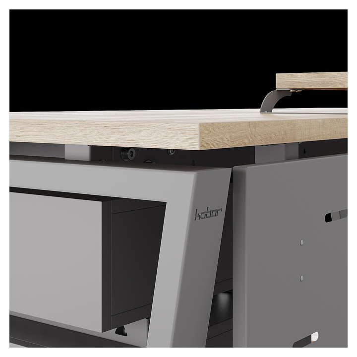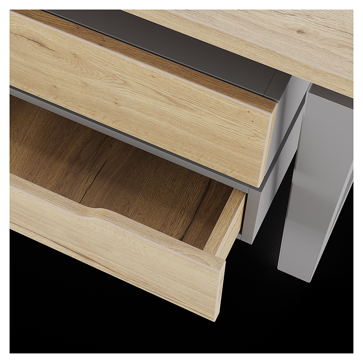 Компьютерный стол Кобор КOTR-80/70 aluminum/natural используется в офисных помещениях и кабинетах руководителей. Модель оснащена опорами в форме обратной трапеции. Каркас выполнен из металла, выкрашенного в цвет алюминиевый металлик (RAL9006), столешница – из ламинированной древесно-стружечной плиты (ЛДСП) цвета натуральный дуб (H1180 ST37). Опции (заказываются отдельно):