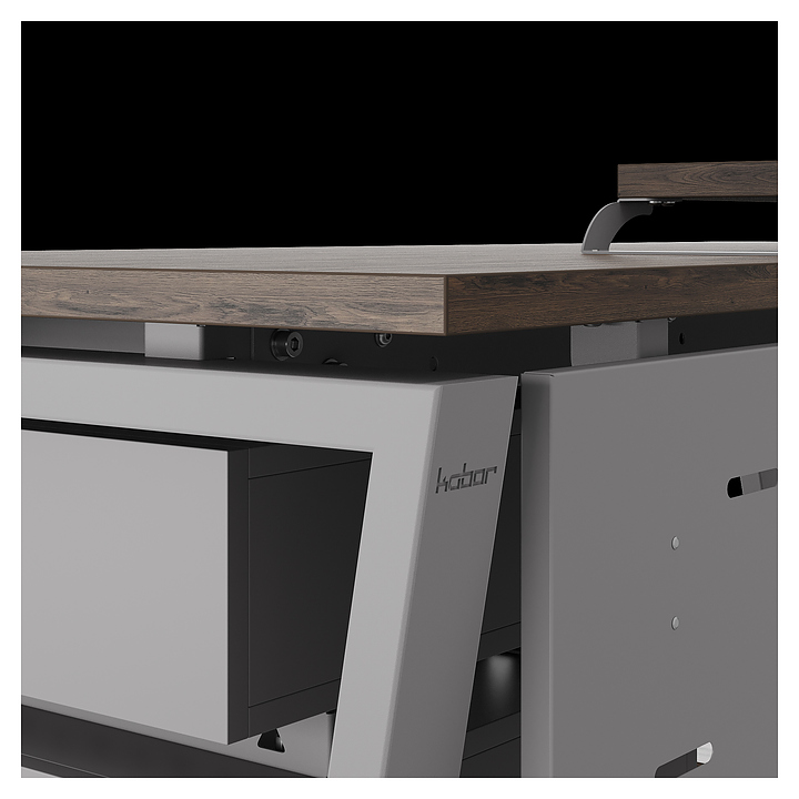Компьютерный стол Кобор КOTR-80/70 aluminum/charlston используется в офисных помещениях и кабинетах руководителей. Модель оснащена опорами в форме обратной трапеции. Каркас выполнен из металла, выкрашенного в цвет алюминиевый металлик (RAL9006), столешница – из ламинированной древесно-стружечной плиты (ЛДСП) цвета дуб чарльстон (H3154 ST36). Опции (заказываются отдельно):