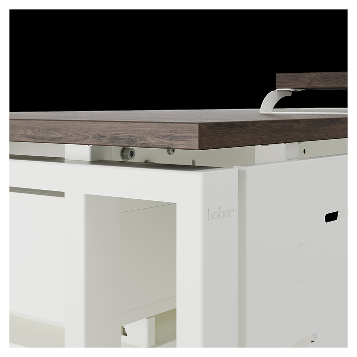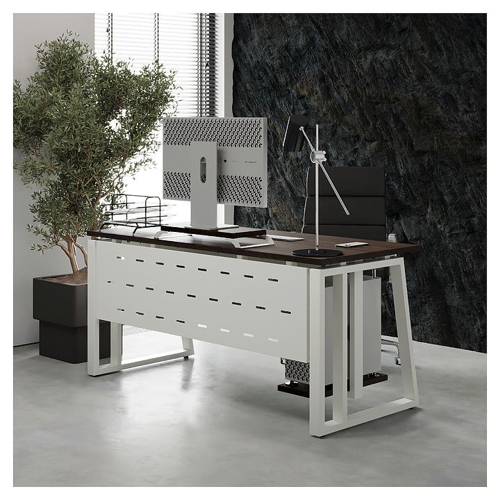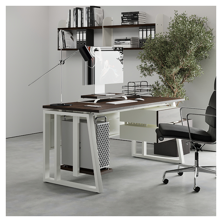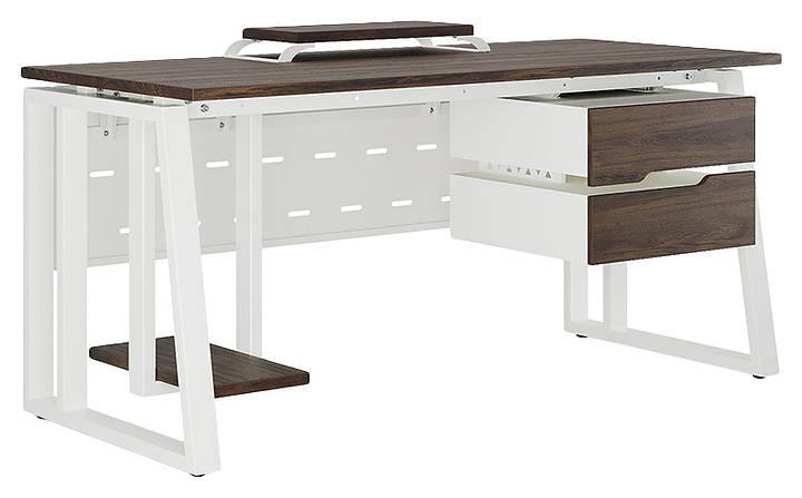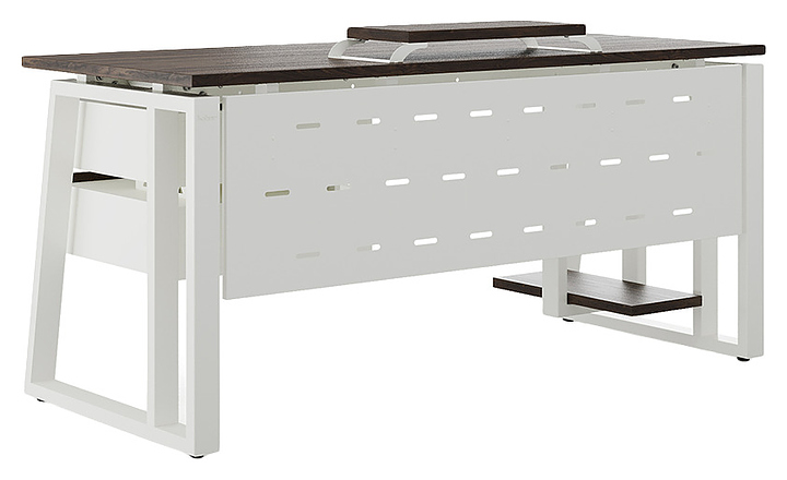 Компьютерный стол Кобор KTS2-100/80 white/charlston используется в офисных помещениях и кабинетах руководителей. Модель оснащена усиленными вертикальными балками опорами в форме наклонной трапеции. Каркас выполнен из металла, выкрашенного в цвет белый муар (RAL9016), столешница – из ламинированной древесно-стружечной плиты (ЛДСП) цвета дуб чарльстон (H3154 ST36). Опции (заказываются отдельно):