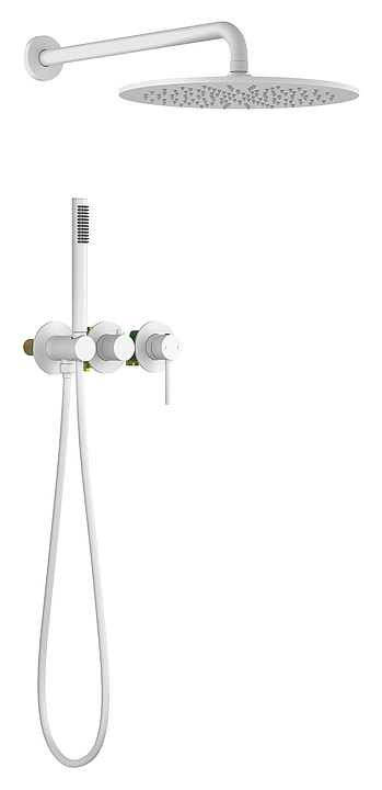 Душевой комплект TIMO Saona SX-2349/16SM используется в ванных комнатах. Модель оснащена круглым верхним душем, цилиндрической ручной лейкой и дивертором с керамическии пластинами. Однозахватный тип управления позволяет быстро и плавно регулировать подачу воды одной рукой. Верхний душ, ручная лейка, держатель ручной лейки и декоративные накладки выполнены из латуни, которая отличается прочностью, долговечностью и устойчивостью к перепадам температуры. Комплектация: