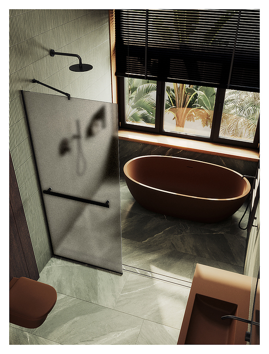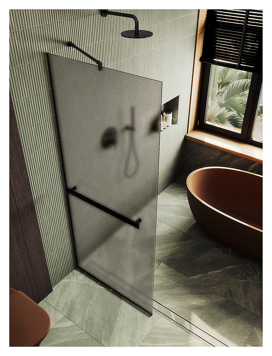 Перегородка душевая с полотенцедержателем MaybahGlass MGD-728-6у 79х195 см, бронза матовая, черный