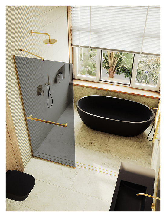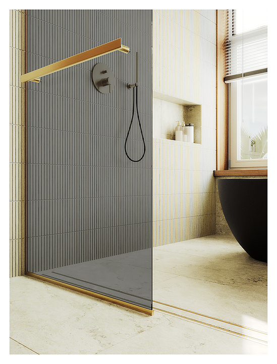 Перегородка душевая с полотенцедержателем MaybahGlass MGD-729-3у 79х195 см, графит, золото