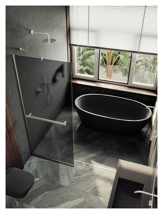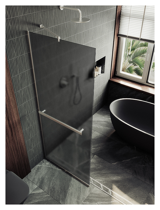 Перегородка душевая с полотенцедержателем MaybahGlass MGD-730-5у 79х195 см, графит матовый, хром матовый