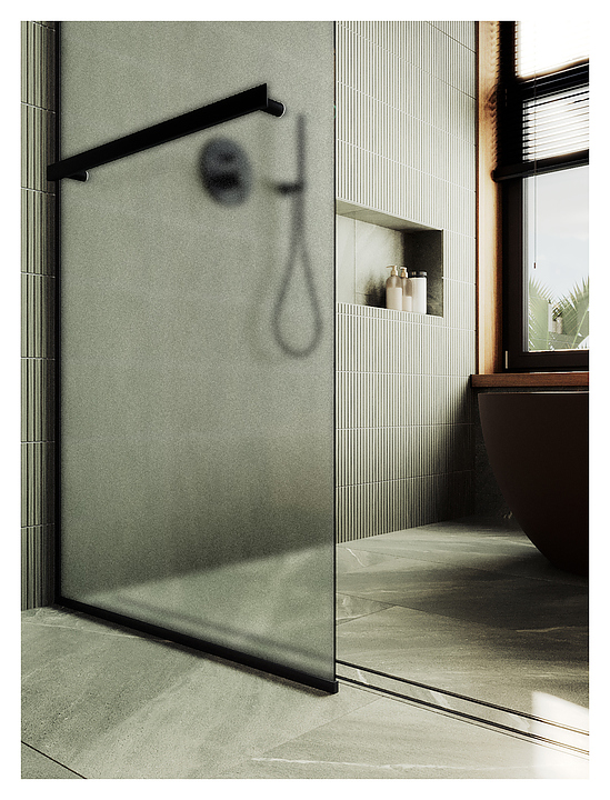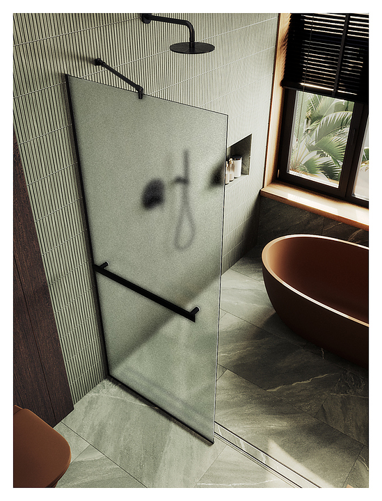 Перегородка душевая с полотенцедержателем MaybahGlass MGD-731-6у 79х195 см, сатин, черный
