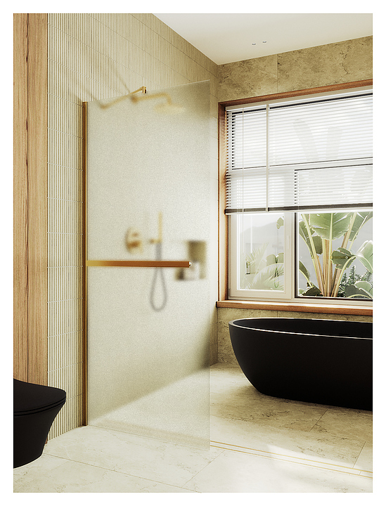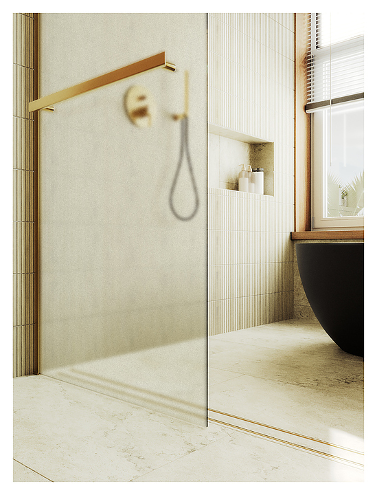 Перегородка душевая с полотенцедержателем MaybahGlass MGD-731-3ш 79х195 см, сатин, золото