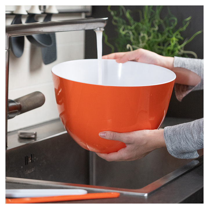 Миска Trebonn Bowls&Colanders 1824133 используется на предприятиях общественного питания и торговли, в частных домах и квартирах для приготовления салатов, теста, маринования мяса и других блюд, в которых необходимо перемешивать ингредиенты. Модель можно мыть в посудомоечной машине. Изделие выполнено из меламина. Дополнительные характеристики: