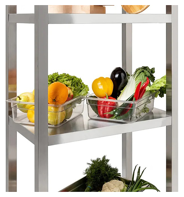 Стеллаж Кобор СКТ-80/40 предназначен для хранения посуды, кухонной утвари и сухих продуктов на предприятиях общественного питания, торговли и в промышленно-производственных помещениях. Каркас выполнен в виде уголка 40х40 мм из оцинкованной стали, полки - из нержавеющей стали AISI 430. Сварная конструкция обеспечивает жёсткость стеллажа. Ножки регулируются по высоте, что помогает избежать неустойчивости рабочей конструкции. Опоры регуляторов высоты не подвержены коррозии во влажной среде. Внимание! На фото аналогичная модель другого размера. Внимание! Информация о товарах, размещенная на сайте, не является публичной офертой, определяемой положениями Части 2 Статьи 437 Гражданского кодекса Российской Федерации. Производители вправе вносить изменения в технические характеристики, внешний вид и комплектацию товаров без предварительного уведомления. Уточняйте характеристики у наших менеджеров перед оформлением заказа. |