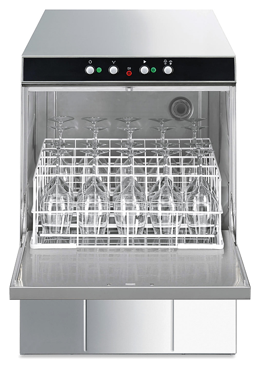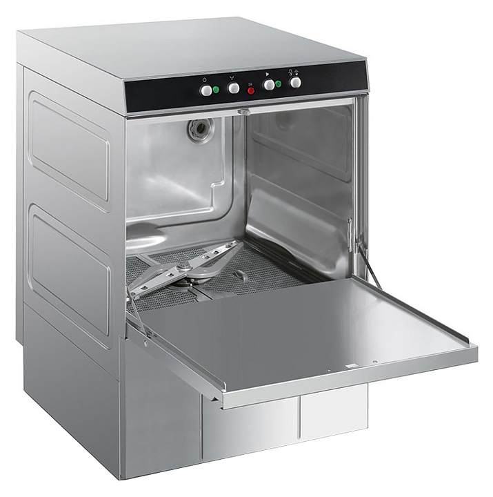 Посудомоечная машина с фронтальной загрузкой Smeg SPD500 серии Ecoline используется на предприятиях общественного питания и торговли для мойки столовых приборов, тарелок, стаканов, чашек и другой посуды. Модель оснащена электромеханической панелью управления и регулируемыми по высоте ножками. Корпус выполнен из нержавеющей стали AISI 304, моющий и ополаскивающий рукав из нержавеющей стали, задняя панель из гальванизированной стали, фильтр моечного бака из пластика. Комплектация: