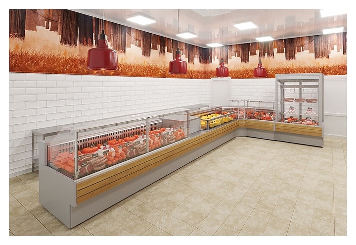 • Розовая подсветка объема для эффектной демонстрации мясной продукции