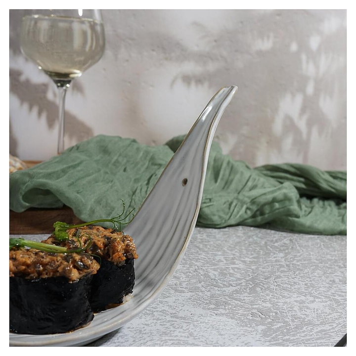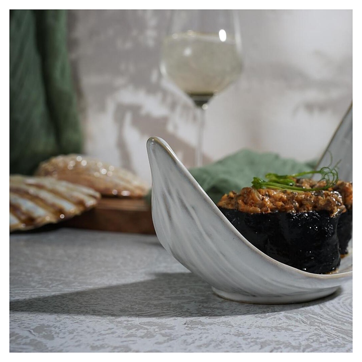 Блюдо сервировочное P.L. Proff Cuisine Gray Leaf Frutti di Mare QB23164010 22х7,5 см h=13 см (керамика)