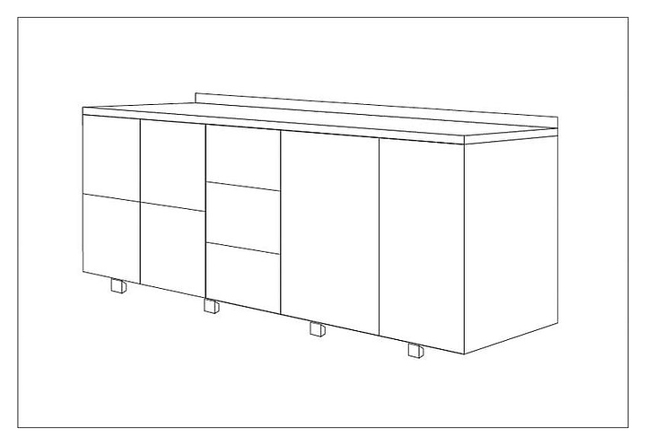 • 1 секция: 2 стандартных ящика; 2 секция: 2 стандартных ящика; 3 секция: 3 маленьких ящика; 4 секция: дверь